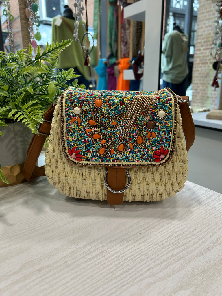 Beaded Crossbody Bag - Stone