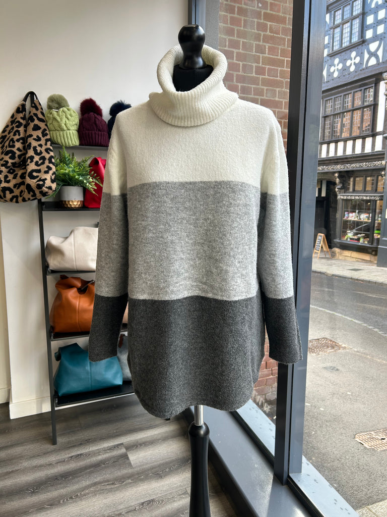 Colour Block Roll Neck - Grey/Charcoal