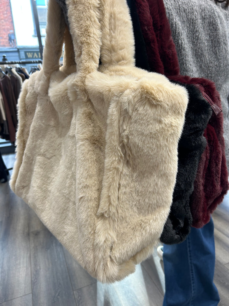 Extra Large Faux Fur Bag - Cream