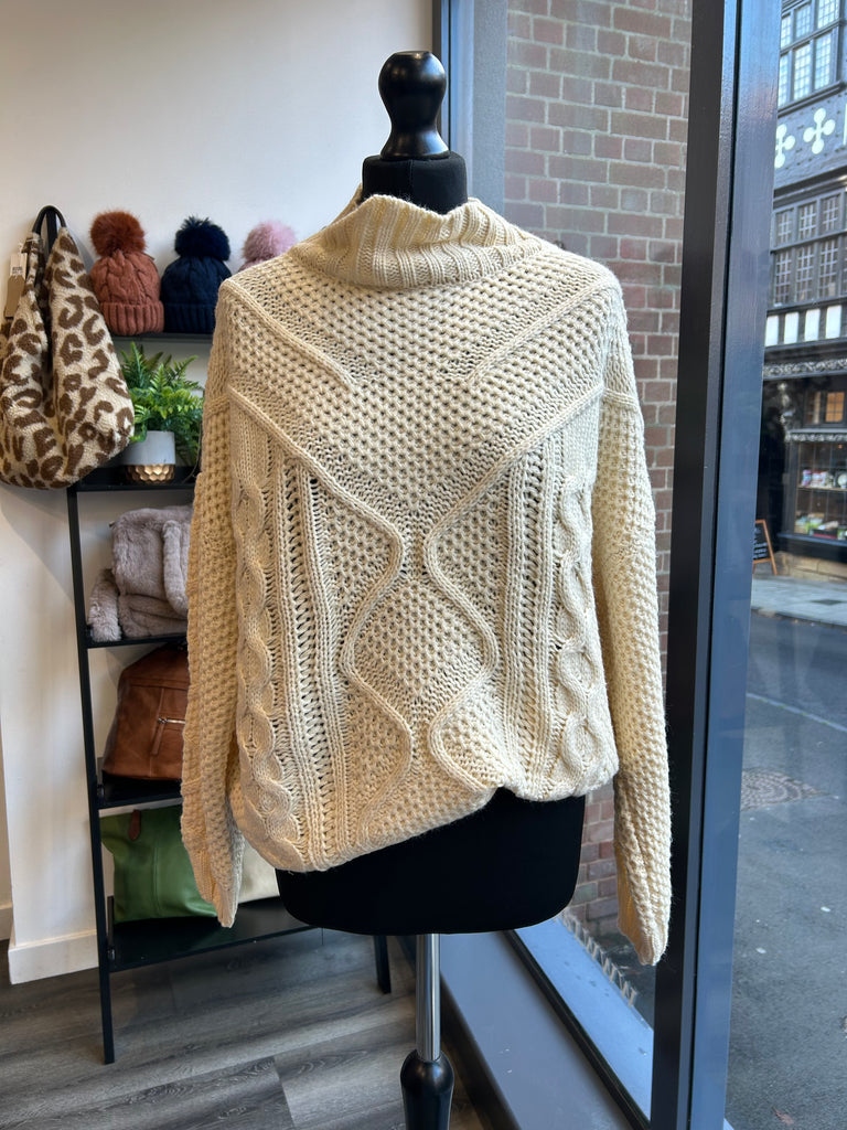 High Neck Cable Knit Jumper - Cream