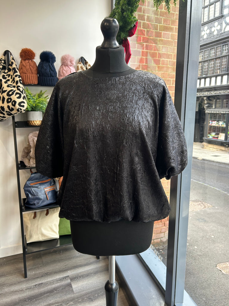 Puff Sleeve Metallic Top - Black