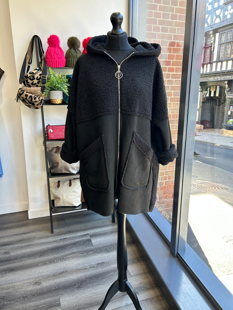 Sherpa Hooded Coat - Black