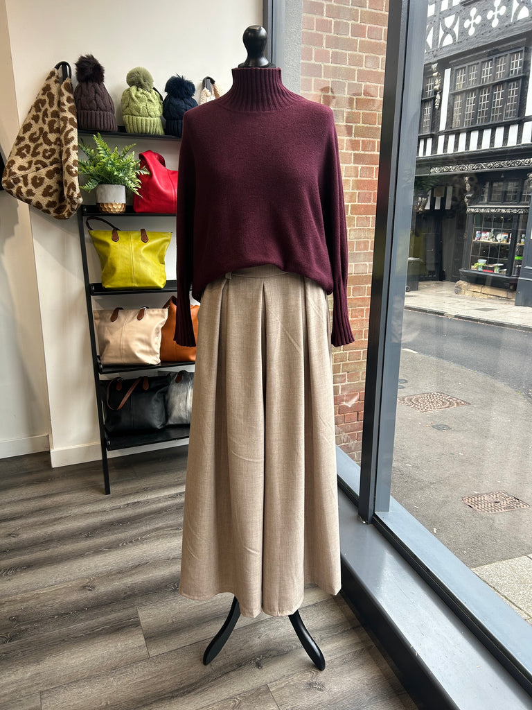 Super Wide Box Pleat Trousers - Stone