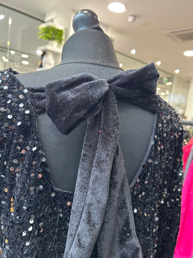 Velvet Sequin Bow Dress - Black